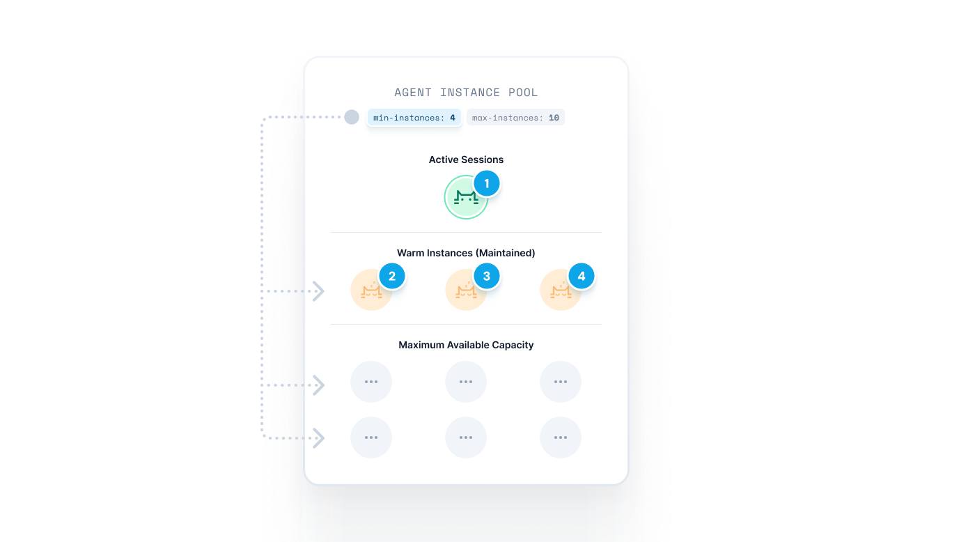 - Once a session concludes, agent instances are either returned to the pool to serve another session or discarded